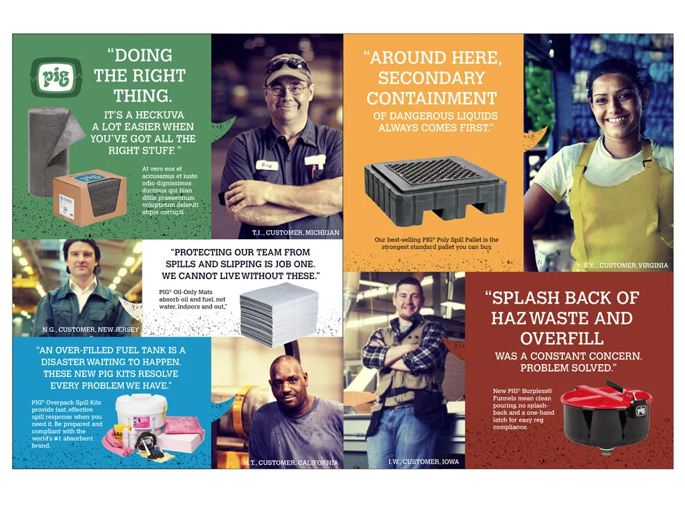 New Pig has a purpose – they create "the world's best stuff for leaks, drips and spills." and they're much loved by they're customers. They also have a long history of environmental initiatives. They just don't want to talk about it. I worked with a team at Slack and Co. to define the right positioning and create the brand campaign that would tell the New Pig environmental story in a manner that's right for them.